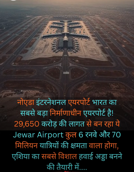 Being built at a cost of ₹29,650 crore, this Jewar Airport will have a total of 6 runways and a capacity of 70 million passengers.